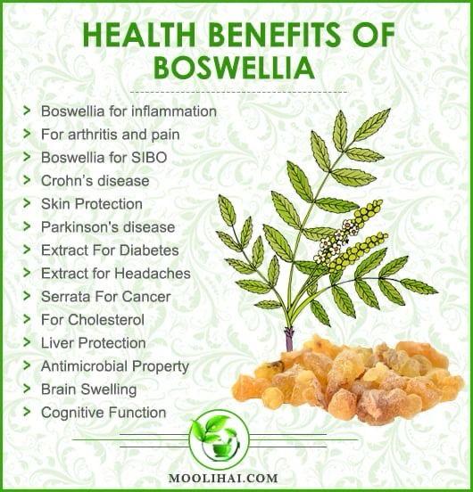 Frankincense extract is good for stomach aches, nausea, and indigestion. It is effective in Crohn’s disease and ulcerative colitis. People suffering from IBS (Irritable bowel syndrome) which may include cramping, bloating, diarrhea or constipation also benefit from this herbal extract.